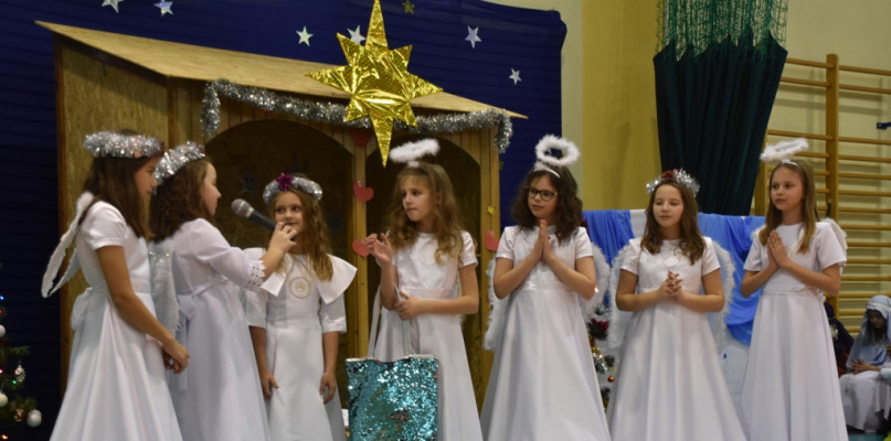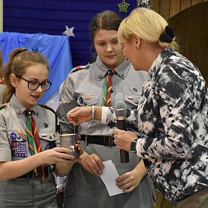 Przedstawienie zostało poprzedzone przekazaniem na ręce dyrektor Anity Lemańskiej światełka betlejemskiego przez przedstawicieli 5 Drużyny Harcerskiej „Żywioły” do której należą uczniowie naszej szkoły.