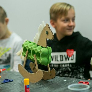 Dziś dzieci wraz z rodzicami wzięły udział właśnie w artystycznej podróży do zakamarków wyobraźni, która ożywiła papierowe formy. Warsztaty były zorganizowane w ramach finisażu wystawy, którą możecie jeszcze oglądać w KDK, zostały też wpisane w program atrakcji 27.finału WOŚP.
