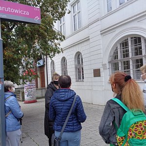 Niektórzy z seniorów przyszli z kijkami, tak, jak sugerował tytuł zadania publicznego pn. „Spacerem po Kutnie – nordic walking dla seniora”. O zabytkach i historii naszego miasta w sposób niezwykle interesujący opowiadała Aleksandra Szafrańska-Dolewska. Seniorzy usłyszeli legendy związane z powstaniem Kutna, prawdziwą historię o synu jednego z właścicieli Kutna, który przegrywał majątek w kasynach Monte Carlo, informację o tym, z okien której kamienicy wyglądał dr Antoni Troczewski. Przewodniczka wytłumaczyła także Seniorom, dlaczego na elewacji Willi Doktora są uwiecznione takie atrybuty jak cyrkiel, miara, linia…