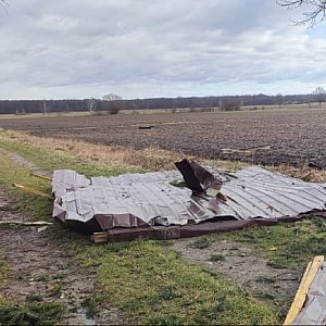 Siedem domów uszkodzonych w Ostrówkach w gminie Dąbrowice, to skutki trąby powietrznej, która przeszła przez powiat kutnowski. To nie jedyne szkody, w Kajewie drzewo przygniotło auto, pozrywało dachy z nieruchomości i firm na strefie przemysłowej, połamało drzewa. Okresowo brakowało też prądu. W terenie pracują strażacy z Państwowej Straży Pożarnej i Ochotniczych Straży Pożarnych.
