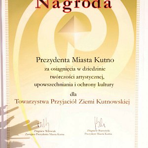 Za osiągnięcia w dziedzinie twórczości artystycznej, upowszechniania i ochrony kultury oraz za promowanie miasta prezydent Kutna uhonorował dyplomem następujące osoby: Henrykę Dybiec, Ninę Kunikowską, Waldemara Kurowickiego, Ryszarda Narkiewicza, Alicję Olczak, Elżbietę Sarnicką, Dorotę Stanicką, Edwarda Sobczaka, Józefa Stańczyka, Elżbietę Świątkowską, Danutę Ujazdowską, Jana Wasiaka, Stanisława Wojdeckiego, Andrzeja Wojtczaka, Magdalenę Wojtczak. Marzenę Żandarowską, Małgorzatę Żylińską.