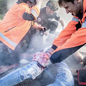 Rozwijanie umiejętności ratownika medycznego w ekstremalnie trudnych warunkach było elementem praktycznych ćwiczeń studentów w Akademii Nauk Stosowanych Gospodarki Krajowej w Kutnie. W programie nie zabrakło symulacji udzielania pierwszej pomocy w sytuacji zagrożenia życia i zdrowia samych ratowników. Szkolący zadbali, aby studenci potrafili zachować zimną krew w obliczu takich wyzwań jak działania w warunkach ratownictwa pola walki, sytuacji katastrof, podejmowania działań ratowniczych w trudnym dla ratowników i pojazdów terenie.
