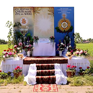 Uroczystość Najświętszego Ciała i Krwi Pańskiej w Woźniakowie w gminie Kutno zebrała wielu parafian. Chrystus przychodzi do naszych serc i daje nam Siebie, aby przemieniać w nas to, co złe. Niestety zły duch walczy o nas, chce odciąć od Źródła Życia. Kiedy zaczynamy liczyć na własne siły, widzimy, jak nasze życie jest kruche. Grzech zabiera nam światło. Ale Jezus Eucharystyczny rozświetla nasze serca, pragnie na nowo poukładać nasze życie i otworzyć umysły, byśmy zaczęli rozumieć, co Pan Bóg chce w nas czynić. To się stanie, kiedy przyjmiemy tajemnicę Eucharystii.