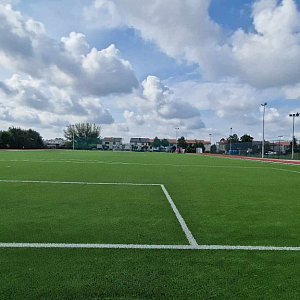 W ramach prac budowlanych zakończono układanie nawierzchni trawiastej boiska. Wokół trwa układanie warstwy poliuretanowej na 4-torowej bieżni z prostą 6-torową. Wykonane jest już miejsce rzutni do pchnięcia kulą i skoku wzwyż natomiast trwa jeszcze budowa miejsca do trenowania skoku w dal oraz trójskoku. Zamontowane zostało linarium wspinaczkowe, urządzenie rozwijające umiejętności fizyczne, koordynację i równowagę. Gotowe jest także boisko do piłki plażowej i do badmintona.Zamontowane jest oświetlenie obiektu.