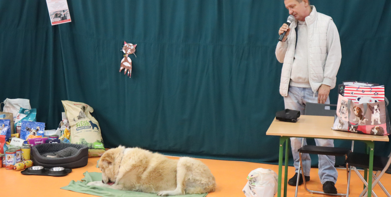 Spotkanie miało na celu uwrażliwić uczniów na cierpienie zwierząt. Doskonałym akcentem powyższego działania było ukazanie w jaki sposób nieodpowiedzialni właściciele traktują swoich pupili. Pies, który przybył w raz z opiekunem miał uszkodzony wzrok przez złe traktowanie ludzi.