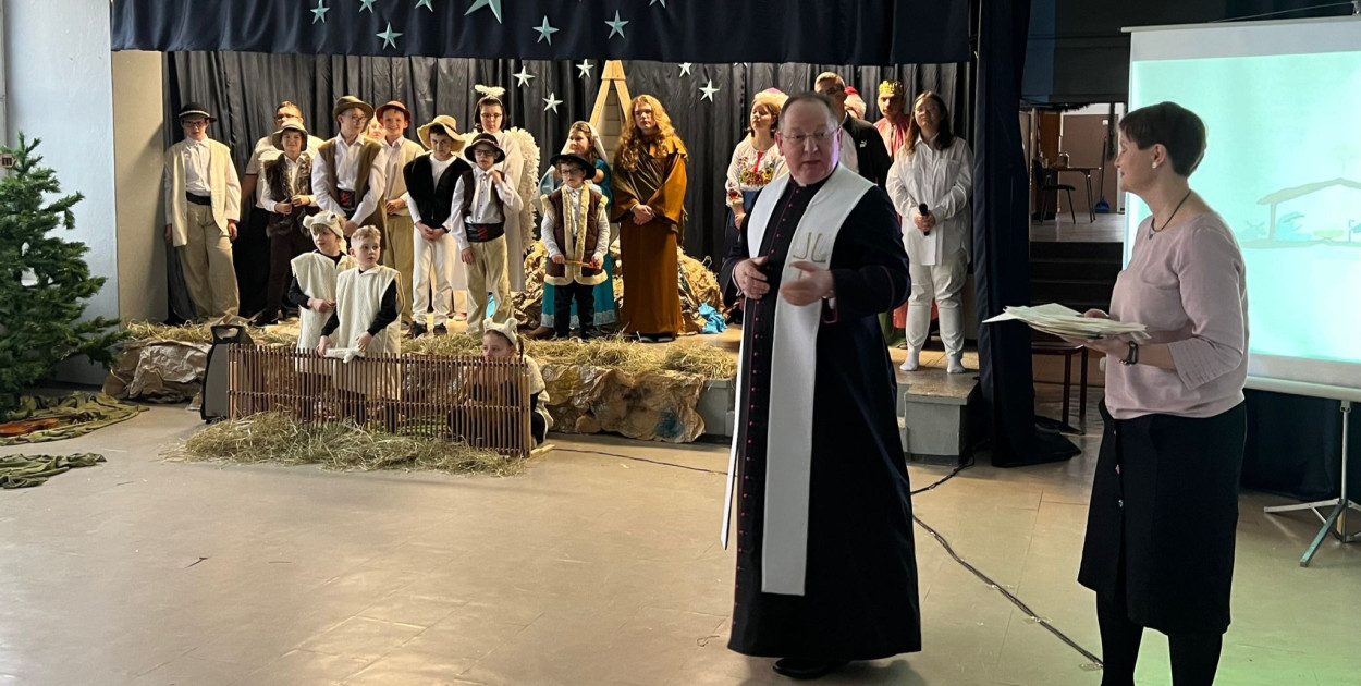 Dyrektor złożyła wszystkim serdeczne życzenia i podziękowania za przygotowanie tej uroczystości. Następnie głos zabrał ks. dziekan, który zwrócił uwagę na istotę Świąt Bożego Narodzenia podkreślił, że Betlejem jest tutaj pośród nas, a dokładniej w sercu każdego człowieka.