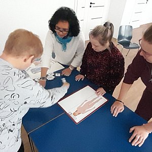 Zajęcia służyły również rozpoznaniu u beneficjentów kompetencji związanych z postawą przedsiębiorczą oraz innych kompetencji decydujących o możliwości podjęcia pracy, doskonaliły jednocześnie ich umiejętności społeczne. W trakcie zajęć praktycznych uczestnicy poznali m.in.zawód fryzjera, mogli sami doświadczyć działań praktycznych w zaprzyjaźnionym salonie fryzjerskim,uczyli się sprawnie obsługiwać urządzenia biurowe wykonując pomoce do komunikacji AAC (piktogramy i książki do czytania uczestniczącego), doskonalili umiejętność obsługi komputera, tabletu, telefonu komórkowego.