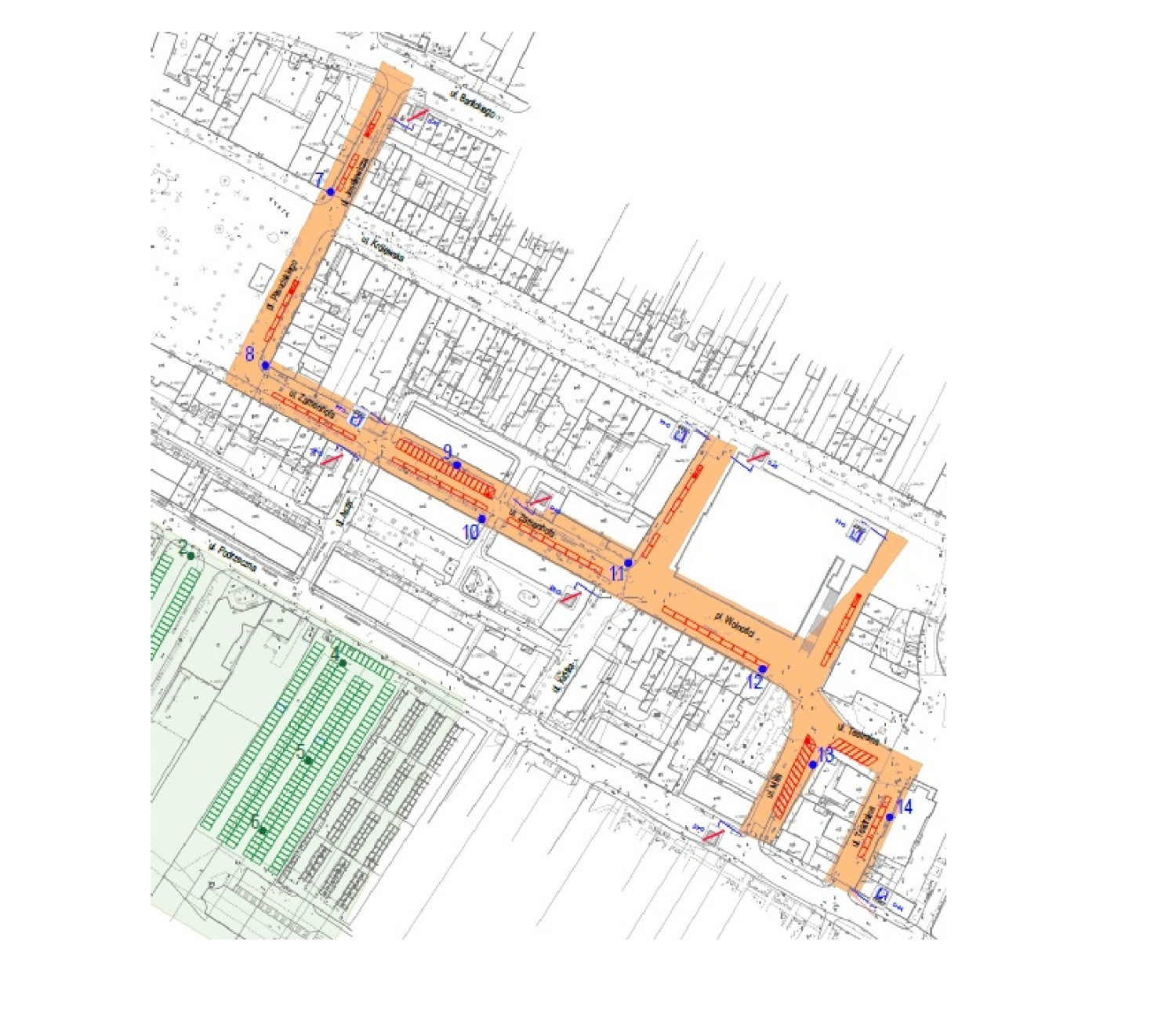 1) ul. Narutowicza (od ul. Sienkiewicza do Ronda Solidarności);