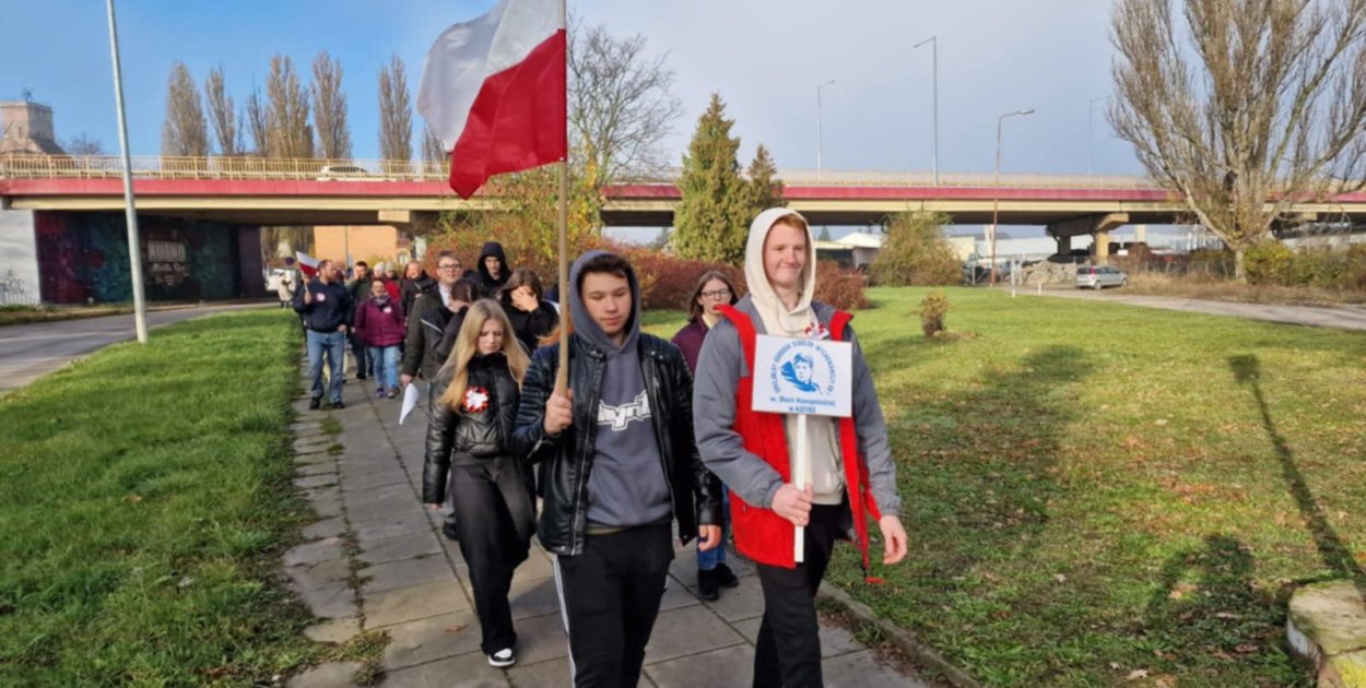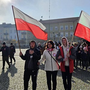 Wydarzenie rozpoczęło się od marszu patriotycznego. Uczniowie i nauczyciele niosąc polskie barwy przemaszerowali ulicą Królewską radośnie śpiewając pieśni, które opowiadają o polskiej historii i walce o wolność. Kolejnym celem był Pomnik Marszałka Józefa Piłsudskiego, gdzie oddaliśmy hołd twórcy polskiej niepodległości. Następnie w podniosłej atmosferze, udaliśmy się na dziedziniec Pałacu Saskiego, by połączyć się z innymi w geście wspólnego świętowania.