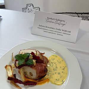 III miejsce - ex aequo „Filet z kurczaka w szafranowym sosie i gruszkowe purée z chipsami z czerwonego buraka" i