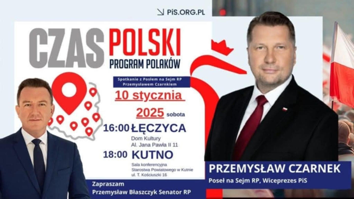 Senator RP Przemysław Błaszczyk zaprasza na spotkanie z posłem Przemysławem Czarnkiem, wiceprezesem partii Prawo i Sprawiedliwość.