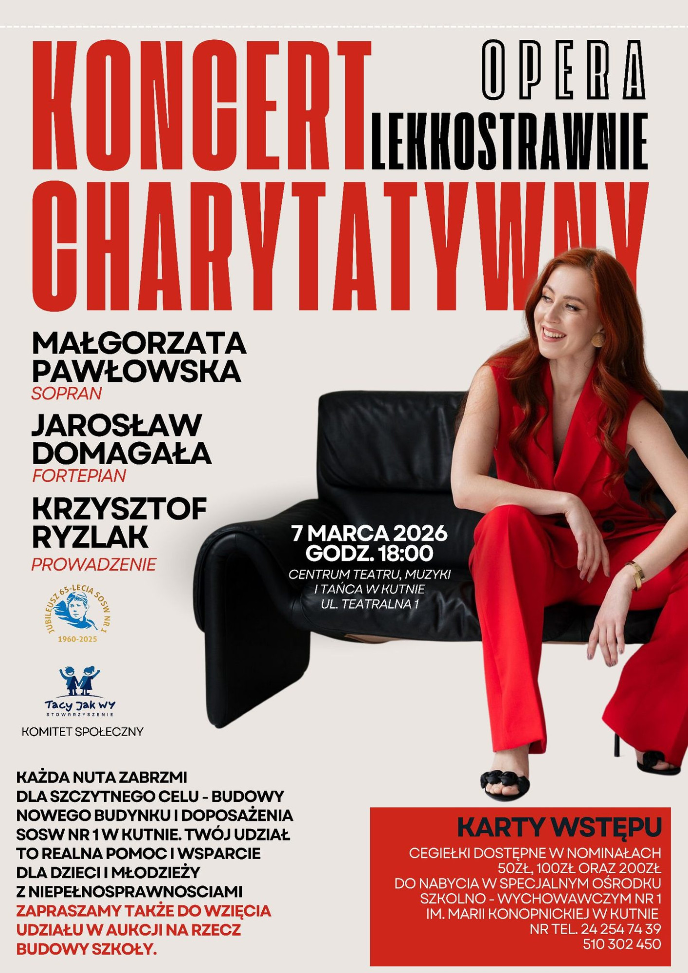 Wyjątkowe wydarzenie organizują Specjalny Ośrodek Szkolno-Wychowawczy nr 1, Stowarzyszenie Tacy Jak Wy oraz Komitet Społeczny. Kartami wstępu są cegiełki w nominałach 50, 100 i 200 zł, dostępne w ośrodku (tel. 24 254 74 39, 510 302 450).
