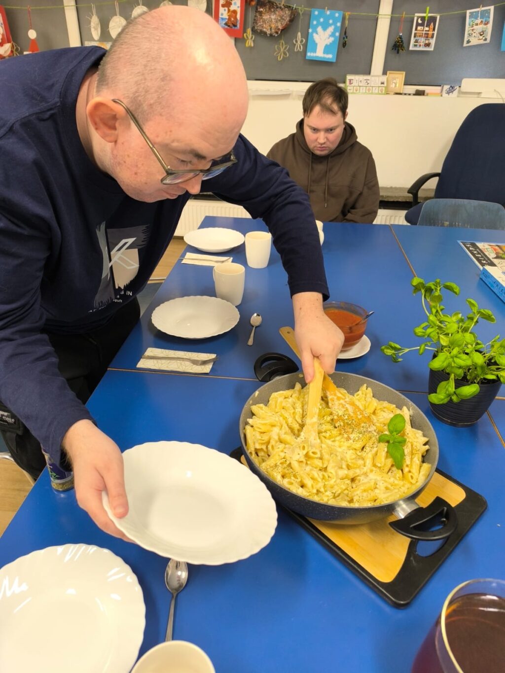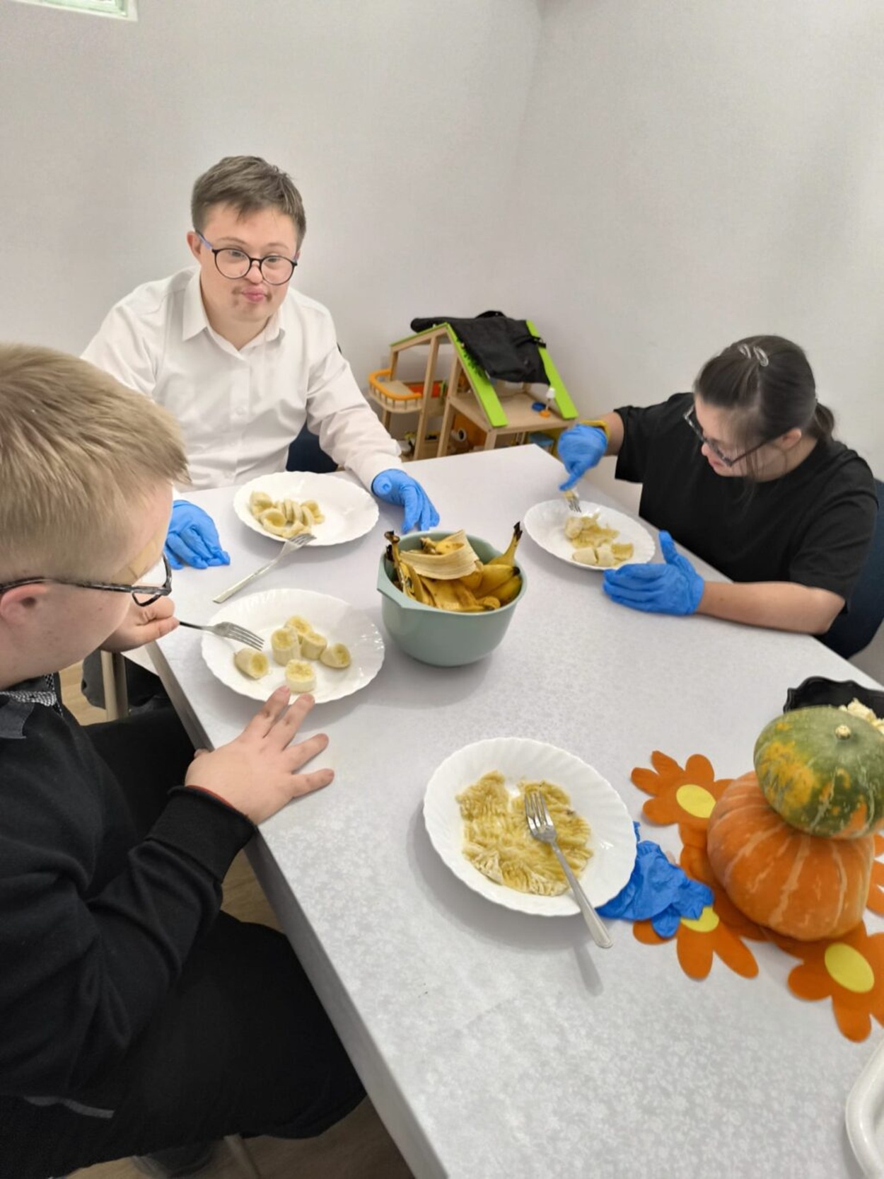 W ramach zadania, trwającego od marca 2025 roku do lutego 2026 roku, realizowano zajęcia grupowe w formie treningów społeczno-komunikacyjnych oraz cykl praktycznych zajęć kulinarnych, porządkowych, mających na celu zwiększenie samodzielności osób z niepełnosprawnością. Szereg działań terapeutycznych przeprowadzono w lokalnej przestrzeni naszego miasta, trenując z uczestnikami umiejętności wykonywania prostych czynności takich jak zakupy, po wcześniejszym ich zaplanowaniu, wyjście do kawiarni, pizzerii, kina, odwiedzanie wystaw plastycznych czy nawet wspólnego wyjazdu do teatru.