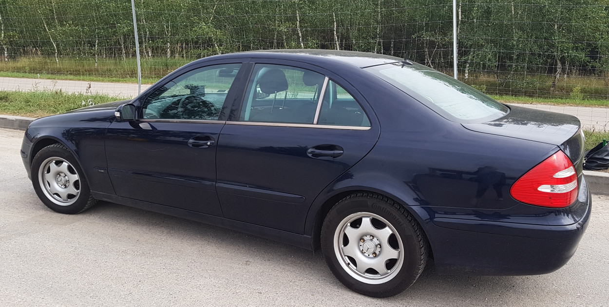 Od ponad roku mam przyjemność podróżowania Mercedesem W 211 sedan. Samochód wyprodukowano w 2003 roku. Na karoserii pokrytej lakierem Tansanit Blau metalik możemy dostrzec normalne ślady użytkowania, drobne ryski, jedną większą na drzwiach kierowcy. Na szczęście nie zauważyłem śladów korozji, które najczęściej pojawiają się na dołach drzwi i tylnych błotnikach, szczególnie w egzemplarzach sprzed liftingu przeprowadzonego w 2006 roku.