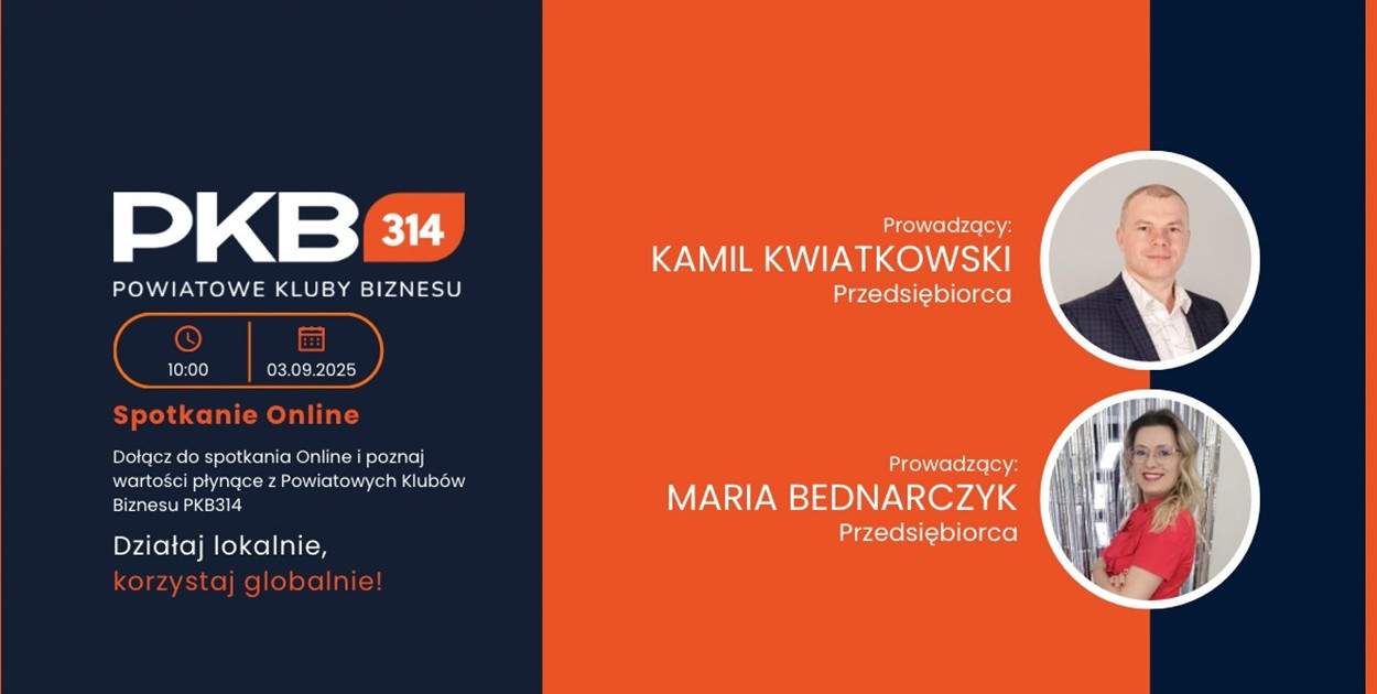 Zapraszamy na otwarte spotkanie w formie online na Google Meet, podczas którego poznasz ideę Powiatowych Klubów Biznesu 314.