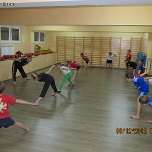 Na początku zajęć odbyła się rozgrzewka ogólnorozwojowa z dużą ilością ćwiczeń szybkościowo - zwinnościowych i gibkościowych, a następnie najmłodsi zawodnicy pod okiem nauczyciela - trenera Aleksandra Grabowskiego uczyli się podstawowych elementów technicznych z zakresu semi i light contactu.