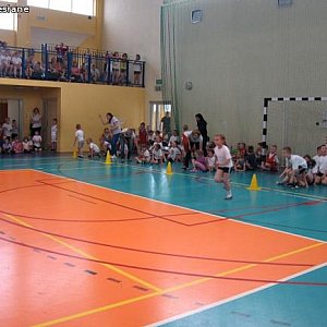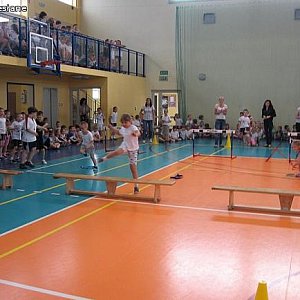 8-osobwe drużyny z poszczególnych klas rywalizowały o zwycięstwo w ośmiu konkurencjach. Do najciekawszych należały: „sadzenie ziemniaków”, bieg z piłeczką na rakietce tenisowej, bieg z woreczkami gimnastycznymi na głowie, prowadzenie piłeczki slalomem kijem do unihokeja. Dzieci z dużym zaangażowaniem wykonywały poszczególne ćwiczenia i były żywiołowo dopingowane przez kolegów i koleżanki ze swoich klas. Po zakończonych konkurencjach wszyscy zawodnicy otrzymali słodycze. Zadowolone buzie zawodników świadczyły, że Turniejada była udana bez względu na zajęte miejsce w klasyfikacji końcowej.