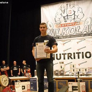 Mateusz Czarnecki - w grupie wiekowej junior do 16 lat i kategorii wagowej do 82,5 kg zdobył pierwsze miejsce z wynikiem 125 kg.
