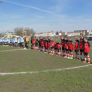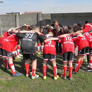 Spotkanie jak na derby przystało było bardzo zacięte. Od samego początku młodzi zawodnicy RÓŻY zdominowali poczynania boiskowe stwarzając sobie kilka bardzo dobrych okazji do zdobycia gola. Strzały Krygla Miłosza, Wasilewskiego Sergiusza, Łykowskiego Marcina i Pasikowskiego Konrada minimalnie mijały bramkę gości, albo były w ostatnim momencie blokowane, albo bramkarz gości wykazywał się refleksem i odrobiną szczęścia. Goście do momentu straty gola nie zagrozili ani razu bramce RÓŻY KUTNO strzeżonej przez Pawła Filipczaka. W 21 minucie meczu po faulu na Pasikowskim Konradzie do piłki podszedł Wasilewski Sergiusz i pomimo dużego kąta zdecydował się na bezpośrednie uderzenie na bramkę z 20 metrów. Nieprzyjemny strzał skozłował tuż przed bramkarzem KS KUTNO, który pomimo dwukrotnej rozpaczliwej interwencji nie był w stanie wybronić go i piłka dość szczęśliwie znalazła drogę do bramki gości. Było 1 – 0 dla SL SALOS RÓŻY KUTNO. Potem optyczną przewagę uzyskali koledzy z KS KUTNO jednak ani jeden strzał w pierwszych 30 minutach meczu nie był celny.