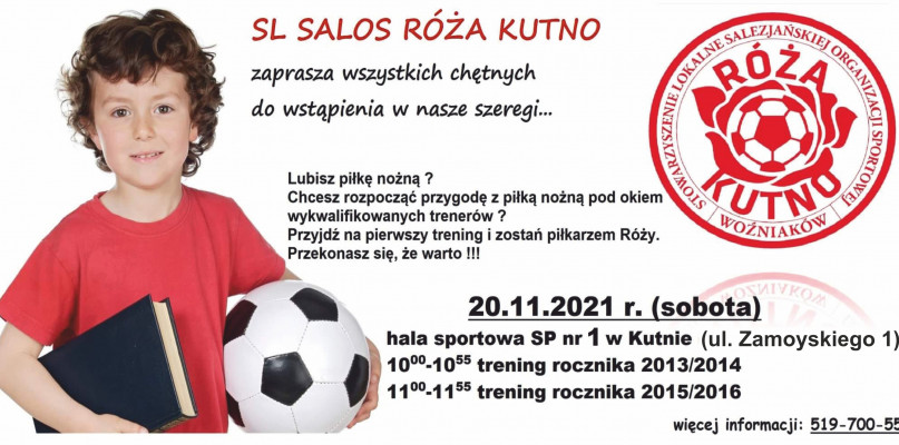 Twoje dziecko chce rozpocząć przygodę z treningami piłki nożnej? Twoje dziecko już trenuje i chcesz sprawdzić jak jest w Róży? Skorzystaj z bezpłatnych zajęć i przekonaj się dlaczego warto trenować z nami! Każdy może przyjść na nasze zajęcia i sprawdzić jak trenujemy! Zapraszamy wszystkie dzieci urodzone w latach 2013-2016!