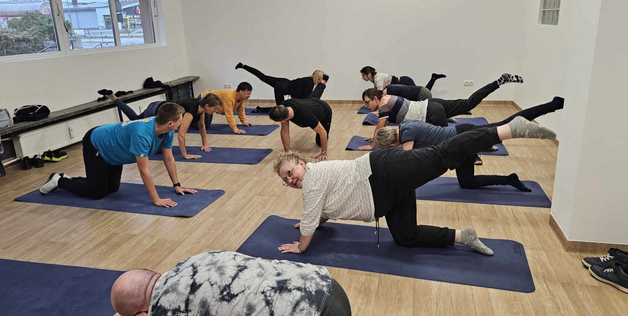 Jesienią, w siedzibie Stowarzyszenia ćwiczyli na matach, stepach, grali w gry zręcznościowe. Chodzili na krótkie spacery z kijkami, ćwiczyli na pobliskich siłowniach plenerowych.
