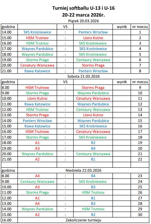 W kategorii U-16 HSM Trutnov, Storms Praga,Centaury Warszawa, Lions Kutno - Grupa A, w Grupie B SKS Krośniewice, Waynes Pardubice, Panters Wrocław, Rawa Katowice.