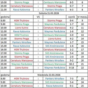 Młodsza grupa rozegrała zawody systemem każdy z każdym. Wystartowały drużyny: HSM Trutnow (Czechy), Storms Praga (Czechy), Waynes Pardubice (Czechy), Centaury Warszawa oraz gospodynie Softballowy Klub Sportowy. Po rozegraniu wszystkich meczy klasyfikacja końcowa prezentowała się następująco: