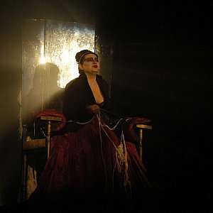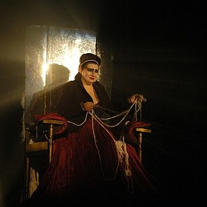 Świntusię Macabrescu (ewentualną rywalkę w miłości syna, niedoszłą żonę Gyubala) zastępuje w niedzielnym spektaklu lalka. W oszczędnej, ale znakomicie stylizowanej scenografii Grzegorza Borysa Romana sceny z lalką śmieszą, ale też wewnętrznie uwierają. Drapieżnej i niekonwencjonalnej całości dopełnia muzyka Piotra Żyły. Podobnie jest z odniesieniami i karykaturą czy satyrą na religię. Kiedy Matka niczym Pieta opłakuje, tu obśmiewuje tyrana-zbawiciela - można mieć naprawdę gęsią skórkę.