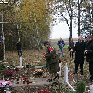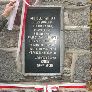 Trasę po miejscach pamięci i pochówku żołnierzy rozpoczęto od Nowego Dębska w gminie Nowa Sucha, gdzie pochowanych zostało 134 żołnierzy po walkach 16.09.1939 r. W miejscu pochówku powstał pomnik, którego historię opowiedział nam Prezes Społecznego Komitetu Upamiętnienia Walki nad Bzurą Alfred Niwiński.