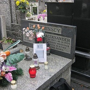 Ruszyliśmy w dalszą trasę. Tym razem punktem docelowym był cmentarz na Powązkach w Warszawie. Tam na mogiłach z września 1939 r. odnaleźliśmy mogiły żołnierzy z 37 p.p. i 26 Dywizji Piechoty. Zostawiliśmy światełka pamięci na grobach żołnierzy 10 p.p., którzy zginęli w zamachu majowym. Odnaleźliśmy grób generała Kutrzeby, dowódcy Armii Poznań, który w 1939 r. stacjonował w okolicach Kutna oraz generała Mikołaja Bołtucia, który zginął w Łomiankach i generała Grzmota-Skotnickiego, który zginął w Tułowicach k/Sochaczewa. Zatrzymaliśmyw pamięci grób generała Włodzimierza Maxymowicza-Raczyńskiego, dowódcy 13 p.p. w Skierniewicach, później dowódca Wojsk Pancernych, a następnie generał Brygady, dowódca Wojsk Lądowych, który zmarł podczas wystawy niemieckiej w Berlinie w 1938 r.