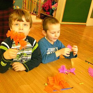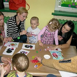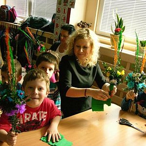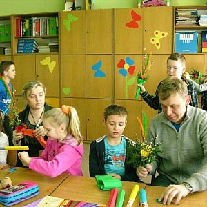 Cykl spotkań z papieroplastyki – plastyki obrzędowej zakończył się 27 marca w Przedszkolu Miejskim Nr 16 "Calineczka", gdzie wspólnymi siłami z dziećmi i rodzicami tworzono śliczne kartki wielkanocne.
