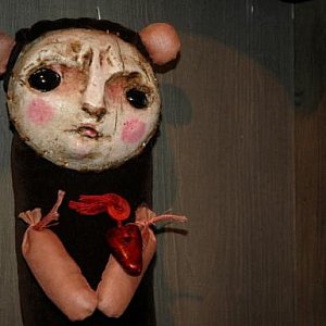 - Rozkochana w średniowiecznej rzeźbie sakralnej i ludowej, znaczę je pęknięciami i ubytkami, nadającymi nostalgiczny charakter starej zabawki z historią. Najpierw powstaje jedyna i unikatowa twarz - rzeźbię ją w glinie porcelanowo-szamotowej. Jest niepowtarzalna, ponieważ nie używam form. Czasem biorę do ręki bryłkę mając konkretny zamysł, innym razem twarz "robi się sama", jakby materializował się duch - takie lubię najbardziej. Ceramiczne elementy wypalam w piecu elektrycznym, w temperaturze 1230 st. C. Potem nakładam polichromię i maluję oczy, które nadają twarzy ostateczny wyraz. Starannie dobieram materiały i tkaniny - szare płótno lniane - mocne, zgrzebne i taftę (najchętniej jedwabną) - delikatną, wyszukaną, zmieniającą kolor w zależności od kąta padania światła. Zestawiam elementy, dodaję detale. Rodzi się lalka. - opowiada artystka.