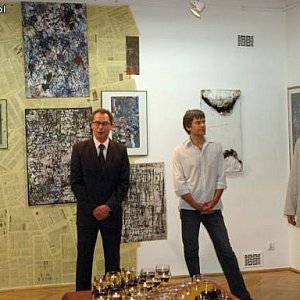 - Twórczość Bogumiła nie jest łatwa w odbiorze, bo taka też jest abstrakcja - mówił Czyżewski. - Jesteśmy artystami różnych światów. Ja myślę, że sztuka powinna mieć swój kontekst, Bogumił nie. Dogadaliśmy się jednak, dlatego ta ściana tytułowa wystawy i jej elementy zawierają strony gazet. Wyobrażam sobie, że od 5.00 rano dziennikarze siedzą i przelewają miliony liter, słów, piszą, piszą, nie zauważają artysty, nie wiedzą, że też od 5.00 artysta miesza farby, dobiera pędzle, maluje, maluje.