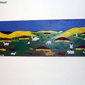 - Rissa Ixa pochodzi z plemienia pasterzy, wojowników i poetów. On natomiast zaczął rysować na piasku, a potem po śmierci ojca, kiedy również zachorowała matka, zawiózł ją do stolicy i tam już został i stawiał pierwsze kroki w tej sztuce. Nie chce jednak wyjawić kto go uczył, choć na pewno obserwował białych europejskich malarzy - opowiadał doktor Adam Rybiński.