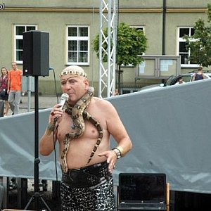 Na szyi poskramiacza wisiał spokojny boa Kalif. Natomiast zgromadzeni kutnianie mieli okazję bliżej zapoznać się z pytonem tygrysim Aleksandrem, nieustannie pokazującym język.