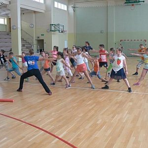 W usportowionym tygodniu nie mogło zabraknąć zajęć z Krav Magą, która z roku na rok staje się tradycją wakacyjnych zajęć w Bibliotece, a wszystko dzięki wspaniałej instruktorce Jolancie Wasilewskiej, którą dzieci wprost uwielbiają. Krav Maga dla dzieci uczy, jak radzić sobie z wszelkimi rodzajami przemocy i ataków. Jest łatwa do nauczenia gdyż opiera się na naturalnych i intuicyjnych odruchach.