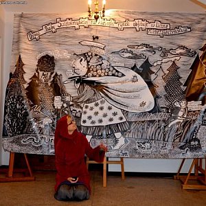 Kielecka artystka Joanna Biskup-Brykczyńska, na zaproszenie organizatora przygotowała realizację plenerową w duchu tzw. „włóczkowej partyzantki”, zaprezentowała również monumentalną grafikę oraz dokumentację swoich działań kolorem, humorem i zaskoczeniem, które wyrywają mieszkańców, użytkowników miast z codziennej rutyny. Ciekawym wątkiem okazała się historia społecznej obrony drzewostanu na jednym z kieleckich osiedli, kiedy to działanie z kolorowymi włóczkami pozostawiło efekt nie tylko w postaci uratowanych od wycinki drzew, ale również w uformowaniu sąsiedzkiej społeczności. Dotychczas o takich akcjach mieszkańcy Kutna mogli czytać w Internecie lub niszowych czasopismach, od soboty mamy nad stawem w Parku im. R.Traugutta własne, niezwykłe drzewo. Przez minione dni przybywa nam zdjęć uśmiechniętych mieszkańców pozujących na kolorowym i ciepłym w dotyku pniu. Osobiście bardzo cieszy mnie ta realizacja, wybrane do niej drzewo od lat pobudza moją wyobraźnię, jego kształt, w domyśle historia i możliwa symbolika zasługują na uwiecznienie. Uczestnictwo w montażu gigantycznego „szala” i tkaniu barwnych promieni, było nie tylko lekcją włóczkowych technik, ale też zachętą do kontynuacji, do dbałości o ten poskręcany pień i do grupowych prób nadawaniu mu znaczeń.