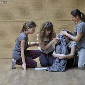W zajęciach pobudzających wyobraźnię i poprawiających plastykę ciała oraz etiudach teatralnych uczestniczyli członkowie grup przygotowujących spektakle na 21 Przegląd Teatrów Dziecięcych i Młodzieżowych ŁAPA 2015 oraz członkowie sekcji teatralnych KDK. Towarzyszyli im instruktorzy Dominika Staniszewska, Jadwiga Rzetelska i Wiesław Zwarycz. Łącznie przez dwa dni w przygodzie z teatrem więzło udział 46 osób.