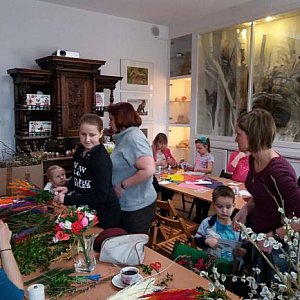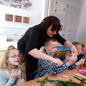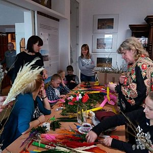 Następnie z bazi, gałązek cisu i bukszpanu oraz własnoręcznie wykonanych kwiatków z bibuły układali palmy wielkanocne. Dzieci zapowiedziały, że stworzonymi podczas zajęć kartkami obdarują najbliższych, pisanki ozdobią ich dom lub znajdą swoje miejsce w koszyczku ze święconką, zaś palmy zabiorą ze sobą do kościoła w Niedzielę Palmową.