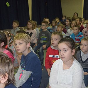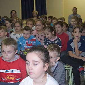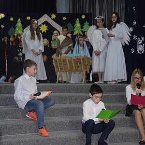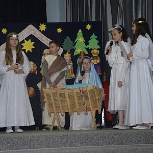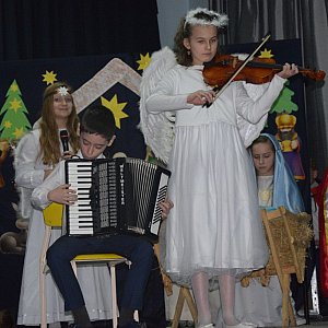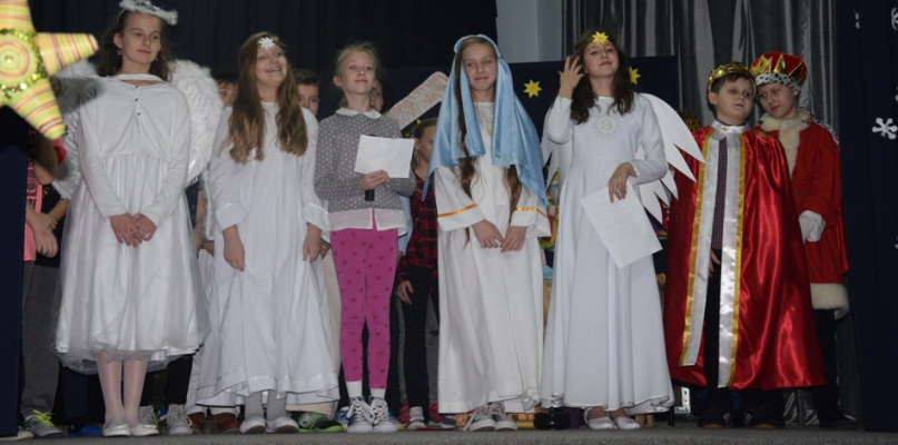 Występ dopełniły kolędy w wykonaniu dzieci. Widownię stanowili uczniowie klas IV-ych, III-ich, II-ich i I-ych. Przedstawienie zostało nagrodzone gromkimi brawami.