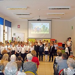 Zaproszeni goście licznie przybyli do szkoły i gromkimi brawami nagradzali występy swoich wnucząt.