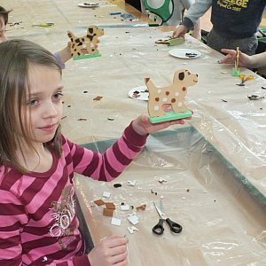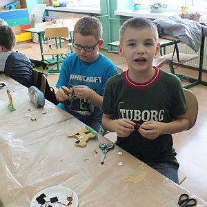 - W styczniu dzieci tworzyły pieski - informuje Aneta Sikora - Ołdakowska. - W ramach zajęć poznały kolejny materiał, często wykorzystywany w pracach manualnych czyli filc. Wycinały z niego łatki, którymi przyozdabiały swoje szczeniaczki. Na zajęciach w ramach warsztatów dzieci rozwijają nie tylko zdolności manualne, ale przede wszystkim rozwijają kreatywność.