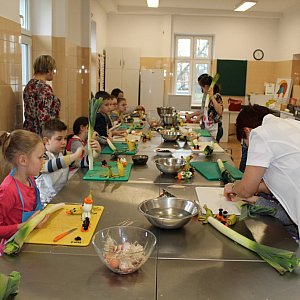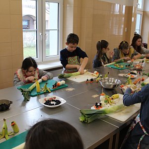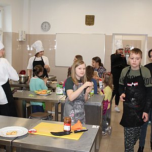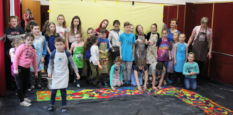 Pozostałe dni upłynęły na równie ciekawych aktywnościach. Pierwszą z nich były warsztaty kulinarne, w trakcie których młodzież opanowała sztukę carvingu, czyli rzeźbienia w owocach i warzywach oraz nauczyła się piec pyszne ciastka. Kolejną atrakcją był dzień z masą plastyczną, podczas którego dzieci wykonały wielki kolorowy „dywan marzeń”. A na zakończenie ferii grupa obejrzała w kinie KDK pokaz „Gwiezdnych