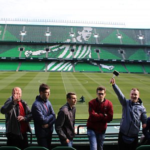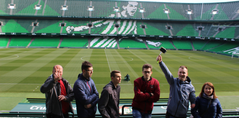 Ostatni dzień praktyk to wizyta 4 uczniów na Stadionie Bestisu Sewilla, obok którego znajdował się nasz hostel. Uczniowie mieli możliwość obejrzenia Izby Tradycji klubu, Izby Trofeów klubu, szatni zawodników, centrum prasowego i co najważniejsze wejść na murawę 50 tysięcznego stadionu.