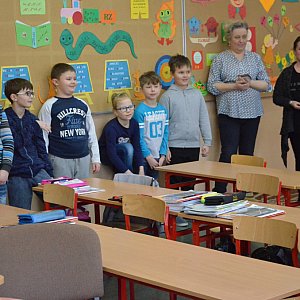 Dzieci pod opieką nauczycieli obejrzały szkołę, uczestniczyły w zajęciach w klasie i na sali sportowej. Dobrze się bawiły i miały duuuużo do powiedzenia:) Taki dzień był dobrą okazją do poznania placówki jako jedynej w powiecie z oddziałami integracyjnymi. Dla wszystkich najmłodszych czekało wiele atrakcji i niespodzianek. Było niezwykle kolorowo, zabawnie a także naukowo. Wszyscy przybyli goście pod opieką nauczycieli zwiedzili szkołę, oglądali sale lekcyjne, bibliotekę, świetlicę, nowo wyremontowaną halę sportową i główny hol szkoły, a także gabinety specjalistów. Dzieci miały możliwość uczestniczenia w ciekawych lekcjach pokazowych, podczas których rozwiązywały zagadki z wykorzystaniem ćwiczeń interaktywnych wyświetlonych za pomocą rzutnika czy telewizora dotykowego. Uczestniczyli w zajęciach matematycznych realizowanych w ramach Kutnowskich Grantów Oświatowych – Sięgaj, gdzie wzrok nie sięga „Mali odkrywcy” , zajęciach integracyjnych gromady zuchowej ZHP „Zwinne Żabki”, zajęciach pokazowych w sali integracji sensorycznej, czy ruchu rozwijającego Weroniki Sherborne. Nie zabrakło również zajęć i spotkań ze specjalistami oferującymi szeroki zakres pomocy psychologiczno-pedagogicznej: tyflopedagogiem, oligofrenopedagogiem, terapeutą pedagogicznym, logopedą, socjoterapeutą, psychologiem i pedagogiem.