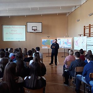 Dzisiaj odbył się wykład pana Michała Cieślaka z Muzeum X Pawilonu Cytadeli Warszawskiej na temat: „Józef Piłsudski – droga do Niepodległej". Przedstawione zostały czasy młodzieńczej konspiracji i fascynacji socjalizmem przyszłego Marszałka, okres galicyjski, pierwszej wojny światowej i początki II RP. Wykładu wysłuchali licealiści oraz goście z kutnowskich gimnazjów.