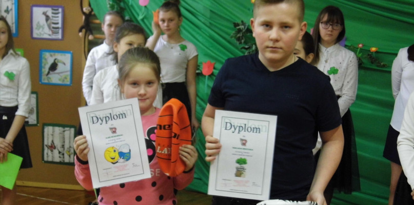 Wręczono także nagrody za zwycięstwo w szkolnym konkursie na zbiórkę surowców wtórnych. Otrzymali je Oliwia Świątkowska z kl. III oraz Igor Jóźwiak z kl. VII.