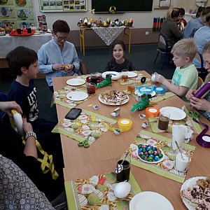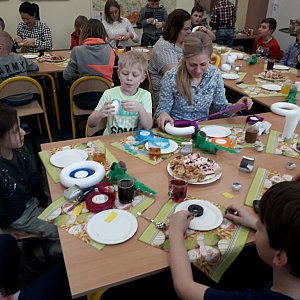 Wspólnie spędzone popołudnie przy herbatce i przy pracy było doskonałą okazją do zacieśniania więzi zarówno między dziećmi, jak i rodzicami, a różnorodność świątecznych ozdób wszystkich wprawiła w wielkanocny nastrój.