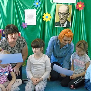 Na początku odbyła się krótka prezentacja postaci poety oraz jego twórczości. Zainteresowanie wzbudziła wystawa przyniesionych przez dzieci książek. Następnie rodzice wspólnie z dziećmi czytali zabawne wierszyki z cyklu „ZOO” oraz wesoło bawili się na podstawie ich treści. Wykonali również kukiełki z drewnianych łyżek. Możliwość wspólnego tworzenia dała wszystkim dużo radości. Powstały pomysłowe, niepowtarzalne postacie zwierząt. Na koniec dzieci zaprezentowały je w kąciku teatralnym.