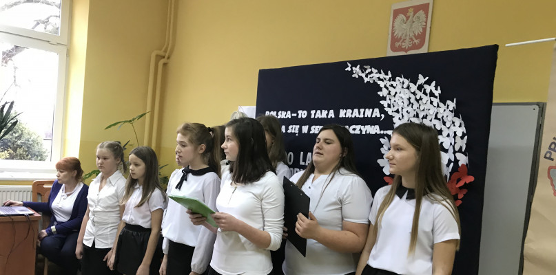 W holu głównym można było obejrzeć wystawę prac plastycznych i dekoracji patriotycznych wykonanych przez uczniów pod kierunkiem pani plastyk Lilii Siedleckiej.